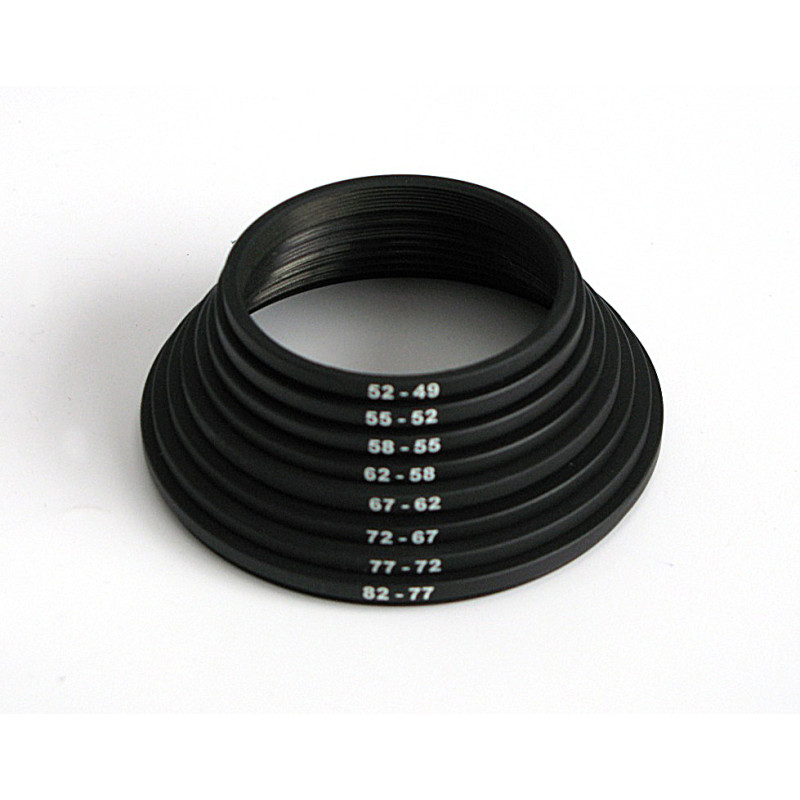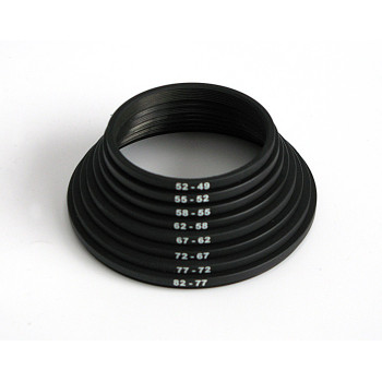 Este conjunto de 8 anillos adaptadores reductores permite el uso tanto de filtros u otro accesorio que tengan una rosca más pequeña en una lente con una rosca de mayor tamaño.