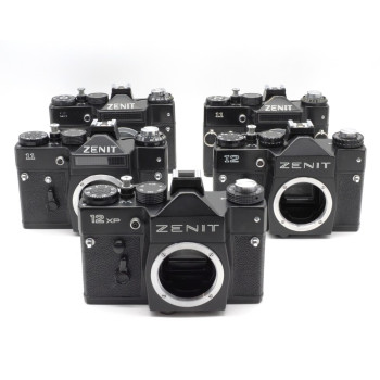 1x Zenit 12 XP: Obturador funciona en todas las velocidades. Tambien el autodisparador. Excelente aspecto estético. Incluye tapa del cuerpo. Fotometro no probado.